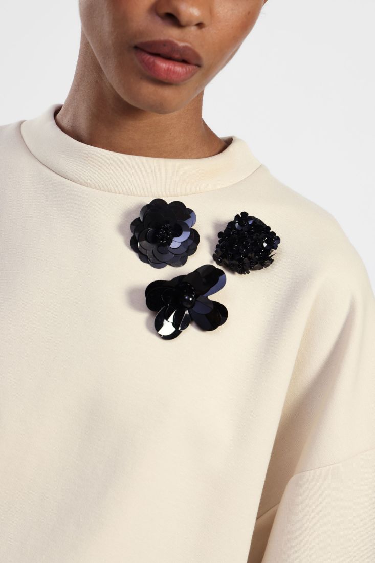 Esta camiseta de manga corta es una adición perfecta a tu armario diario. Con un cuello redondo cómodo y una silueta relajada, destaca por sus elegantes adornos florales en el pecho. Idealmente combinable con faldas o pantalones para un look chic y casual, sin sacrificar la comodidad.