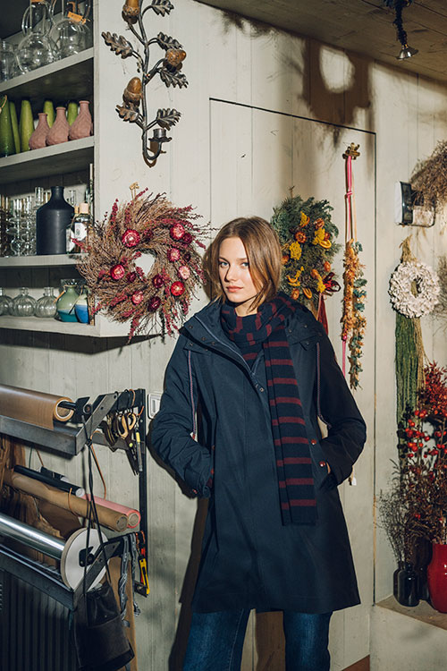 Parka de mujer en color azul marino con capucha ajustable y cordones decorativos. Presenta un diseño de corte recto y largo medio con botones de contraste que aportan un toque moderno y sofisticado. Una prenda versátil y cómoda, ideal para completar looks casuales o de ciudad durante la temporada de frío.