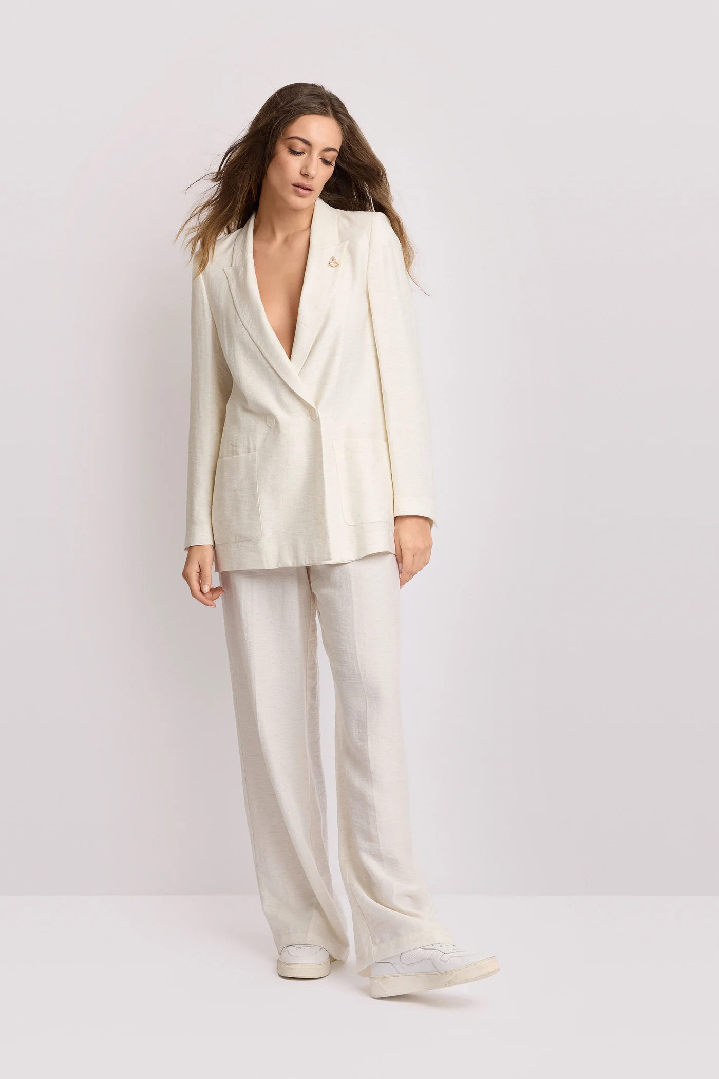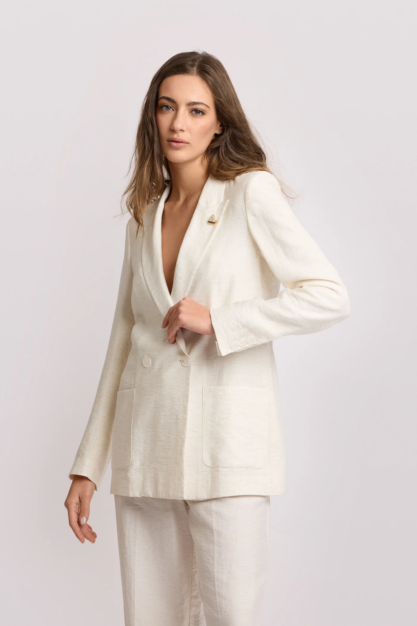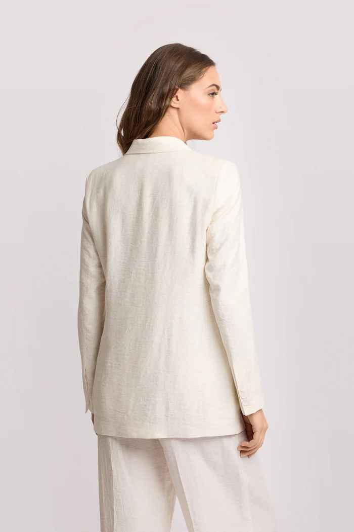 Blazer de lino de la colección Pure Verve. Con diseño cruzado y solapas de muesca. Corte fluido con bolsillos frontales y botones ocultos. Perfecta para un look elegante.