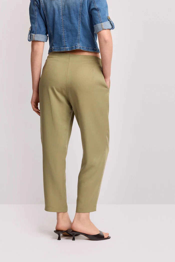 Pantalón de tiro alto y pernera ancha. Cintura elástica fruncida con cordón ajustable. Diseño con bolsillos laterales. Silueta relajada que ofrece máxima comodidad.